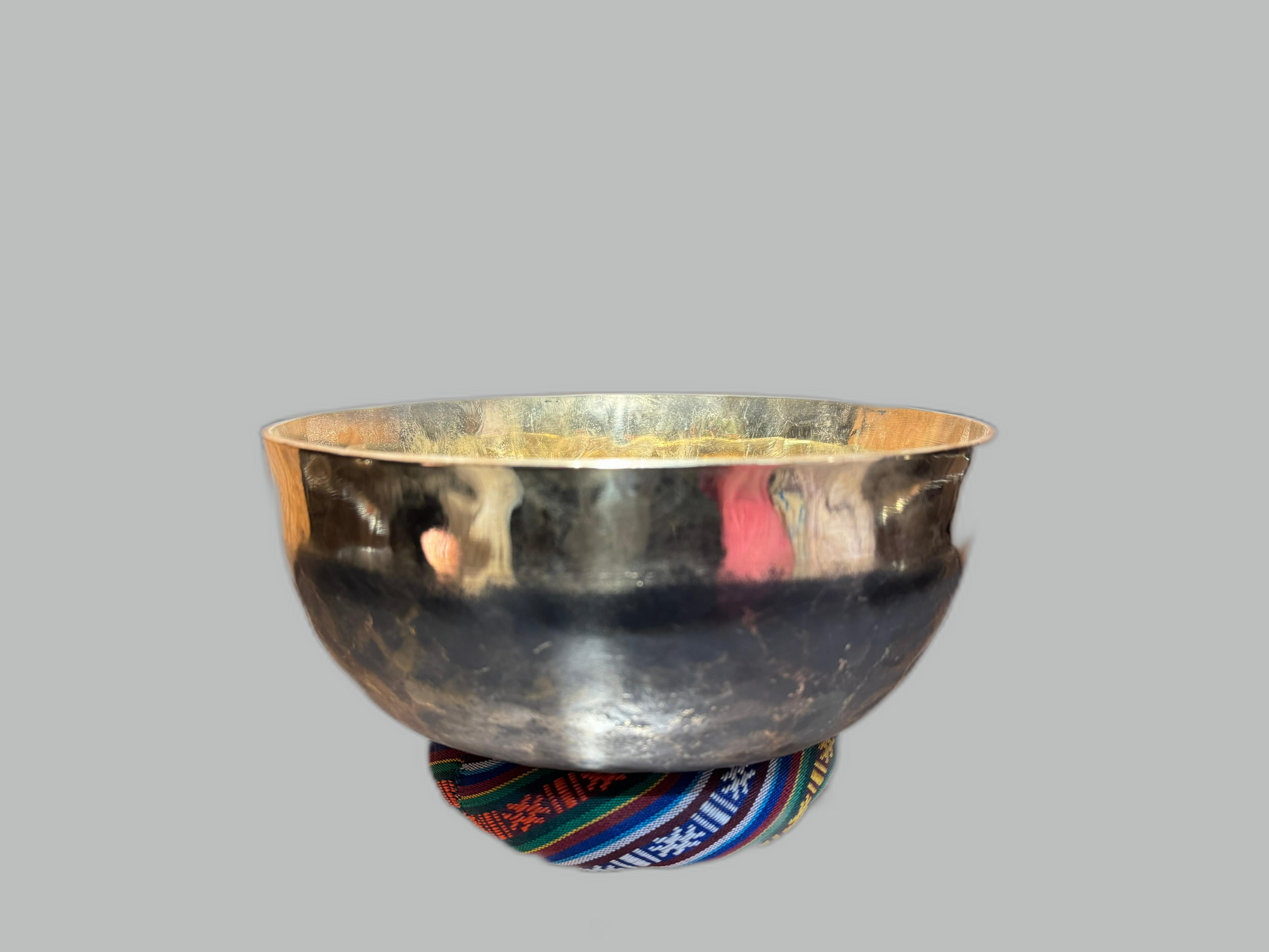 Experience the calming resonance of this 24cm antique singing bowl, tuned to the soothing E frequency. Perfect for meditation and relaxation, its rich tones help create a peaceful atmosphere, supporting your mindfulness practice and emotional balance. Crafted with care, this singing bowl offers both beauty and therapeutic sound benefits.